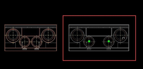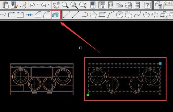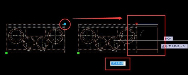 3.回车确认后即可得到修改尺寸后的图块,因为是动态块所以只有方形得到拉伸,圆形不会跟着变形
