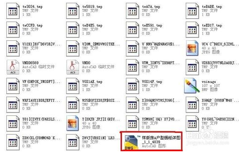在目录里面直接拉到底部,找到如果所示的文件,文件名称还和原来的大体一样,只是格式不一样,这时候你只要把文件后缀格式修改成“dwg”格式就可以了,如图所示,变成CAD能打开的图形了吧。