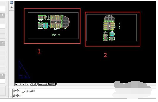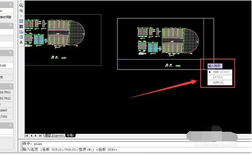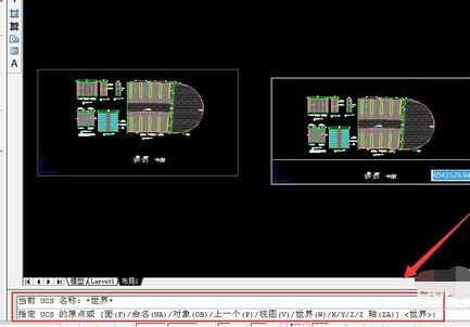 我们首先双击进入第二个布局里面,输入命令ucs——空格,如图所示