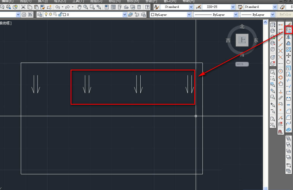 3、使用镜像工具,选择单箭头,如下图。