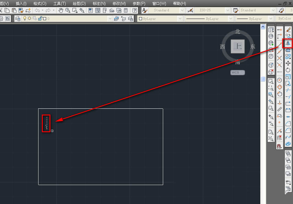 4、选择合适的镜面,镜像出另一个单箭头,如下图。