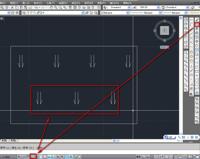 7、再次使用复制工具,关闭正交开关,复制下层的三个,如下图。
