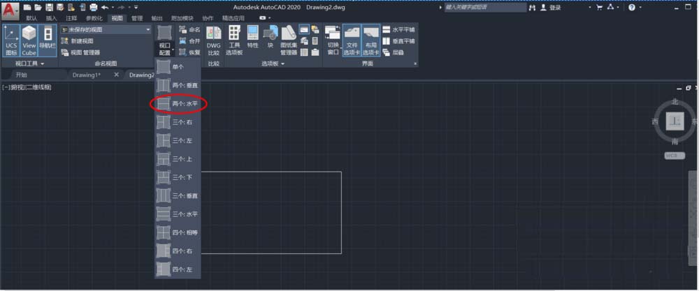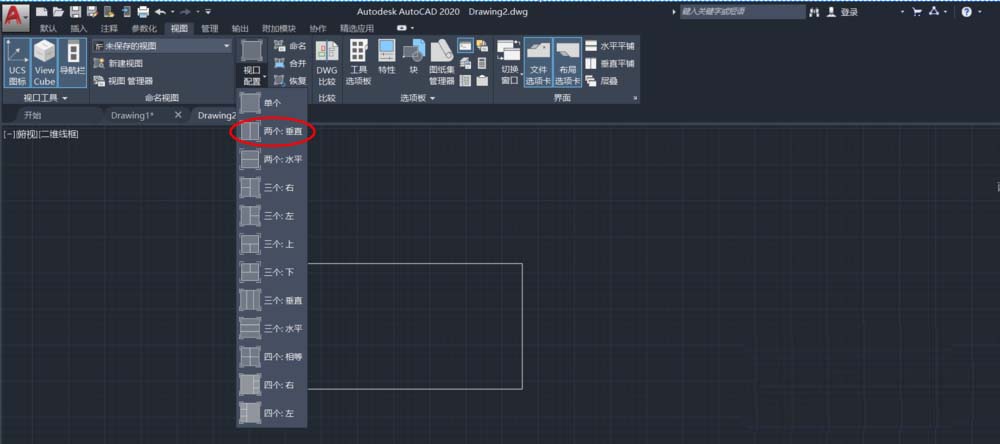 4、点击"视图"中的“视口配置