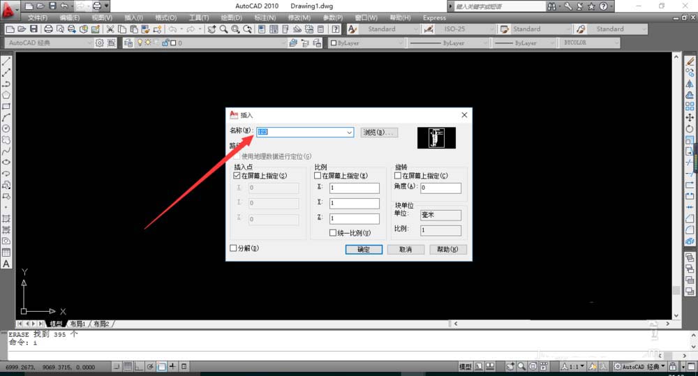 5、输入命令“i”,回车,插入之前做的外部块。