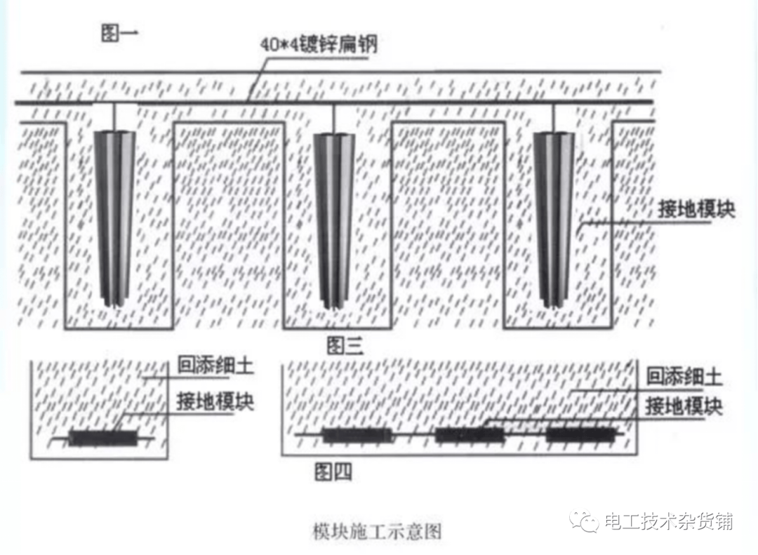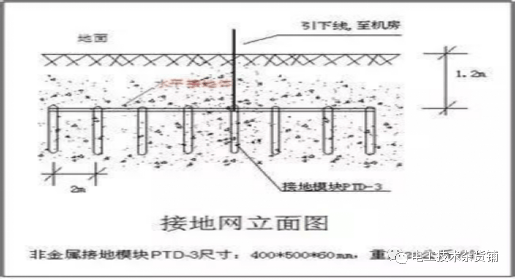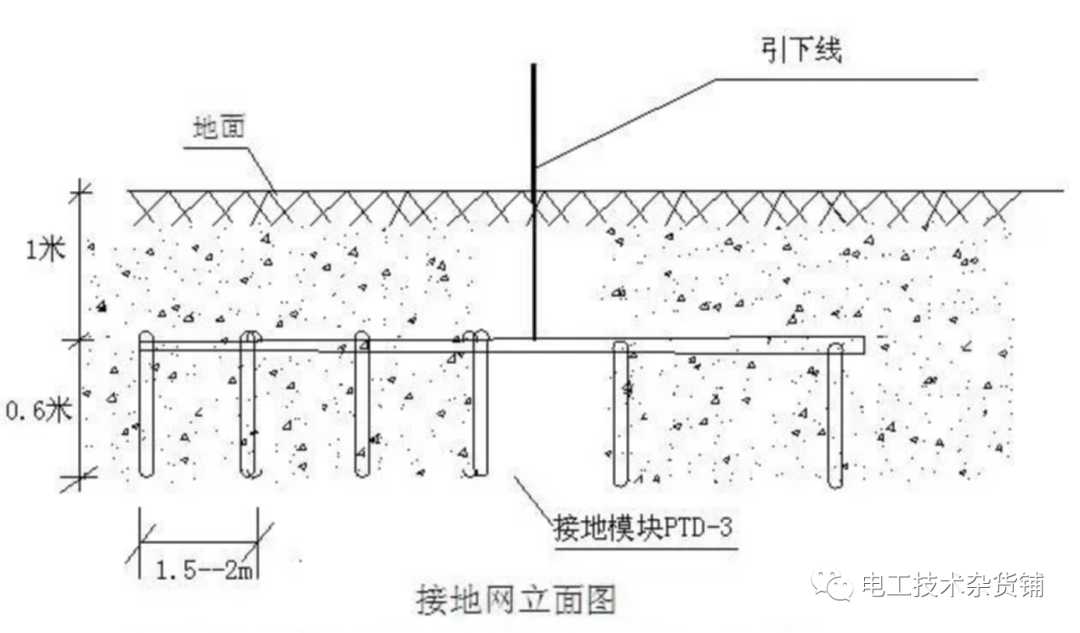 4)接地体(极):埋入土中并直接与大地接触的金属导体,称为接地体。分为垂直接地体和水平接地体。