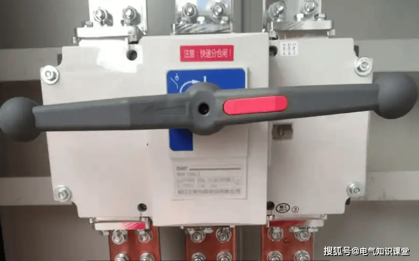 4、当选用的隔离开关用来安装隔离电器时,手柄的中央不能将负荷电流切断,其他形式的隔离开关,是能断开相应的负荷电流的,但必须选用带火弧罩型的刀开关。