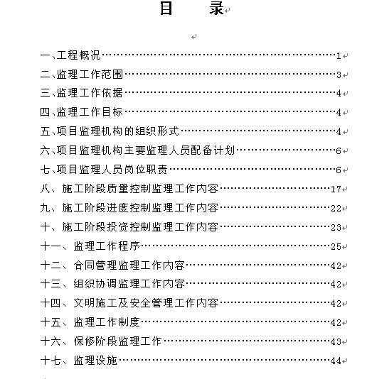 介绍: 监理内容包括铝厂 电解生产系统、阳极生产系统、供电整流系统、辅助生产系统、总图及管网系统等安装工程。涉及到冶炼、电气、机械、工程测量、工程造价、筑炉等专业。 一、工程概况………………………………………………………1 二、监理工作范围…………………………………………………3 三、监理工作依据…………………………………………………4 四、监理工作目标…………………………………………………4 五、项目监理机构的组织形式……………………………………4 六、项目监理机构主要监理人员配备计划………………………6 七、项目监理人员岗位职责………………………………………6 八、施工阶段质量控制监理工作内容…………………………17 九、施工阶段进度控制监理工作内容…………………………22 十、施工阶段投资控制监理工作内容…………………………23 十一、监理工作程序……………………………………………25 十二、合同管理监理工作内容…………………………………42 十三、组织协调监理工作内容…………………………………42 十四、文明施工及安全管理工作内容…………………………42 十五、监理工作制度……………………………………………42 十六、保修阶段监理工作………………………………………43 十七、监理设施…………………………………………………44
