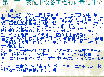 介绍: 按照道路在道路网中的地位、交通功能以及对沿线建筑物和城市居民的服务功能等,城市道路分为快速路、主干路、次干路、支路、居住区道路五类。 路灯按照在环境中的不同,分为常规照明(灯具安装在高度通常为15m以下的灯杆上,按一定间距有规律地连续设置在道路的一侧、两侧或中间分车带上进行照明的一种方式)、高杆照明(一组灯具安装在高度大于或等于20m的灯杆上进行大面积照明的一种照明方式)、半高杆照明(也称中杆照明,一组灯具安装在高度为15~20m的灯杆上进行照明的一种照明方式。当按常规照明方式配置灯具时,属常规照明;按高杆照明方式配置灯具时,属高杆照明)。 路灯安装工程应区别不同杆高、杆材料、臂长,不同灯数,以套为单位计量,工厂厂区内、住宅小区内路灯的安装执行《全国统一安装工程预算定额》江西省单位估价表第二册电气设备安装工程,城市道路的路灯安装执行《全国统一市政工程预算定额》下册。