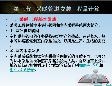 介绍: 工程量计算规则 采暖管道工程量不分干管、支管,均按不同管材、公称直径、连接方法分别以“m”为单位计算。 (1)计算管道长度时,均以图示中心线的长度为准,不扣除阀门及管件所占长度,管道中成组成套的附件(如减压阀、疏水器等)、伸缩器所占长度,也不扣除。 (2)采暖立、支管上如有缩墙、躲管的灯叉弯、半圆弯时(见图5—16所示),其增加的工程量应计入管道工程量中。增加长度可参照表5-1中的数值计取。