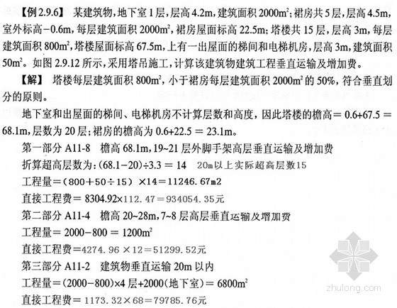 〖例〗如上图,塔吊施工,计算垂直运输费。