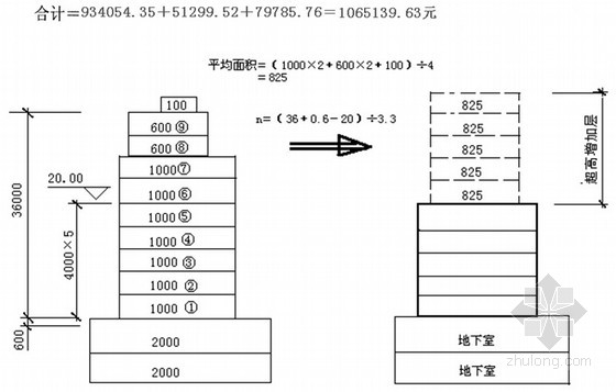 其中:超高折算层层数=(H-20)÷3.3 余数不计,此数为虚拟折算层数。