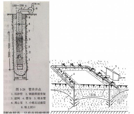 井点抽排深层地下水,降水深度(井管埋设深度,不含滤管)比较大。井点降水因降水深度、土的渗透系数大小不同而采用不同形式的井点管:
