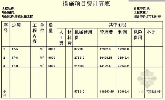 垂直运输工程清单计价