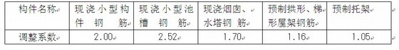 5、现浇(预制)钢筋的人工、机械调整系数按下表计取: