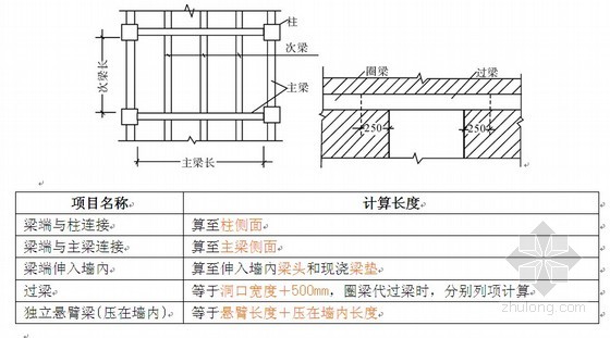 (3)梁长度计算:
