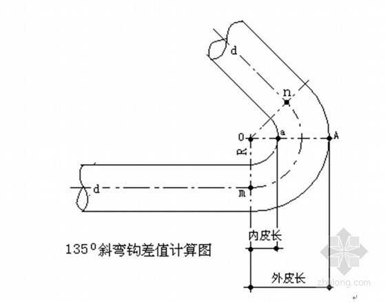135o钢筋弯钩内皮度量差值=135o弯钩中心线圆弧mn-135o弯钩内皮水平度量长0a