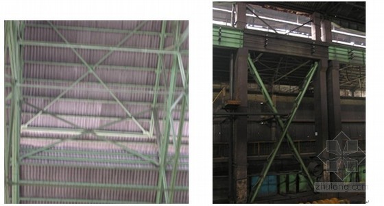 ③垂直支撑:两榀屋架之间交叉斜撑也称剪刀撑。