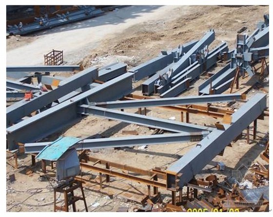 钢屋架、钢桁架、钢网架拼装:指在工厂分段制作(称为榀段),运到现场后,在拼装台上校正、焊接或螺栓固定拼成整榀钢架。整体一次性制成的钢架不适用拼装项目。