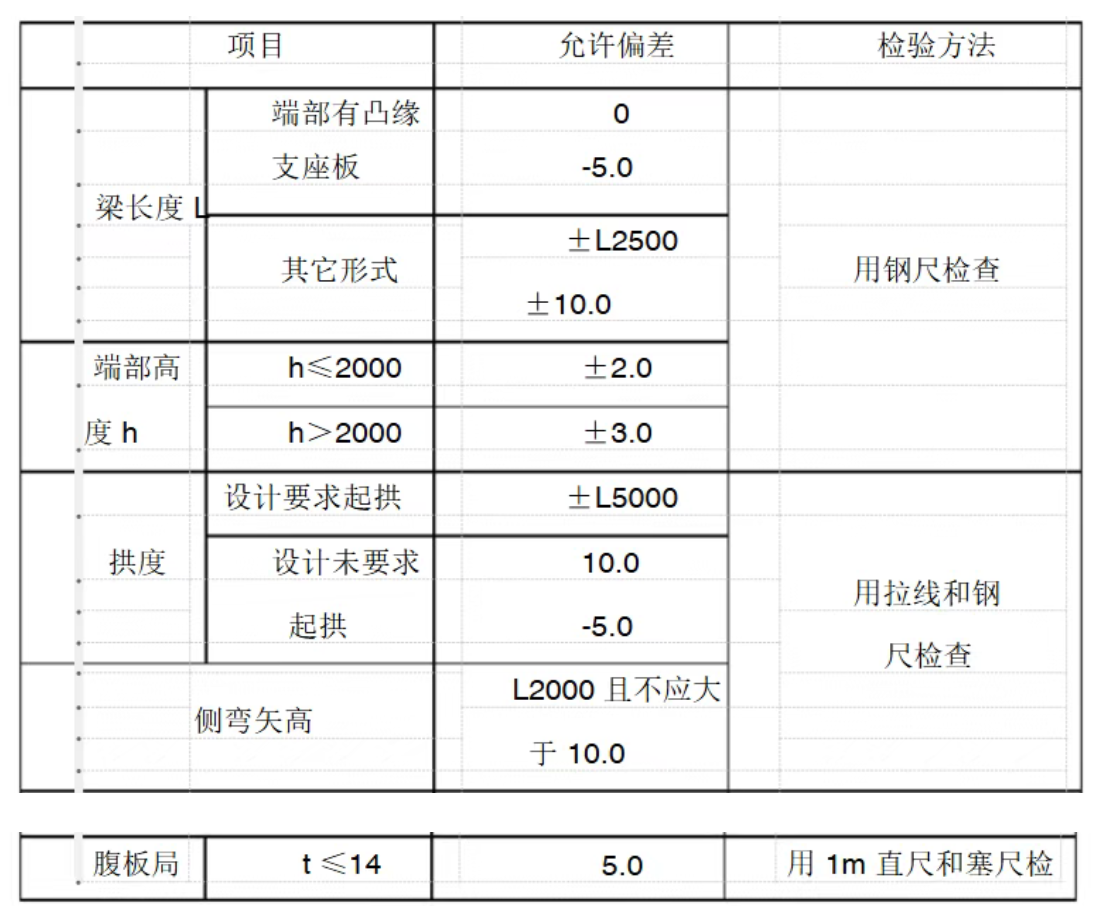 吊车梁外形尺寸的允许偏差: