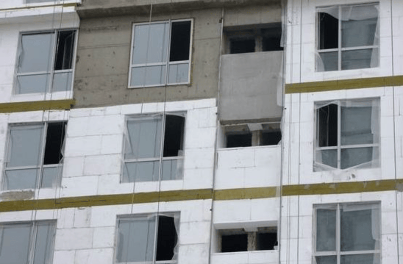 3.门窗洞口四角部位的岩棉板未采用整块岩棉板裁成“L”型进行铺贴。