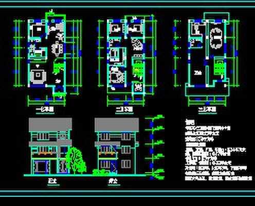 介绍: 农村小别墅设计方案图包括正立图、背立图、说明、一层平面图、二层平面图、三层平面图