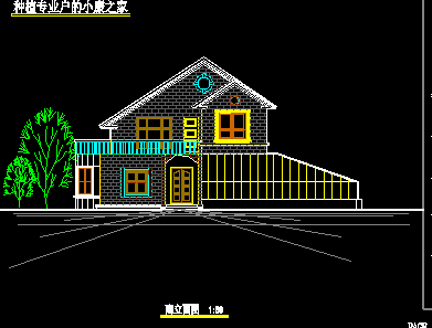 介绍: 户型是2层独栋别墅,是种植专业户的小康之家,建筑面积203平米,玻璃温室面积97平米,参考总造价13万元。一层有客厅、餐厅、厨房、农具间、卫生间、储藏室兼副业加工,温室供暖设施室;二层有卧室2间、卫生间、家庭厅、娱乐厅、屋顶花园。 本户型采用玻璃温室与住宅良好的结合方便管理,外观、造型简洁大方,色彩明快,功能分区合理,房间尺度设计适宜,空间利用率高。 包括平面图、立面图、剖面图
