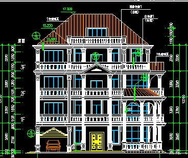 介绍: 户型是4层独栋别墅,框架结构,占地面积256.4平方米,总建筑面积816.85平方米,建筑高度13.4米。一层设有客厅、走廊、车库、卧室、卫生间、餐厅、厨房、佛龛;二层设有起居室、客厅上空、主卧室、卧室、卫生间、淋浴室、衣帽间、三个阳台;三层设有起居室、卧室2间、主卧室、衣帽间、卫生间、淋浴室、2个阳台;四层设有主卧、卧室、衣帽间、淋浴室、卫生间、2个阳台、一个大露台。本户型采用蓝色玻璃瓦,色彩明快,外观造型高低错落,别致大方,采光通风良好,房间尺度设计适宜,空间利用率高,并富有时代气息。门前宽15.7米*16.2米。 图纸包括立面图,各层平面图,剖面图等。