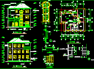 介绍: 本工程建筑面积为328.66㎡, 建筑总高度为13.100m。 本工程建筑等级为三级,建筑物耐久年限:50年;结构形式为三层砖混,耐火等级为二级。 某3层A型别墅建筑施工图,包括平面图、立面图、剖面图等,供大家参考!