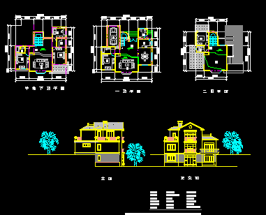介绍: 2层别墅建筑设计图,包括平面图、立面图、剖面图等,供大家参考!