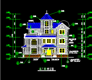 介绍: 本户型为三层独栋别墅,总建筑面积451.22平米,占地面积192.89平米,建筑总高度12.9米。第一层设有客厅、双车库、厨房、餐厅、娱乐室、卫生间;二层设有2间卧室、2间更衣室、2个卫生间、1个书房;三层设有更衣室、2间卧室、健身房、2间卫生间、洗衣间和天台。 本户型外观造型高低错落,别致大方,色彩明快,功能分区合理,房间尺度设计适宜,采光通风良好,适合建造于平坦地带。 包括:轴立面图、轴立面图大样、四栋底层平面图、栋二层平面图、栋屋顶平面图、栋风楼屋顶平面图等,供参考!