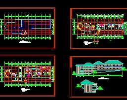 介绍: 某招待所设计方案图包括地下一层平面图、一层平面图、二层平面图、立面图、剖面图等