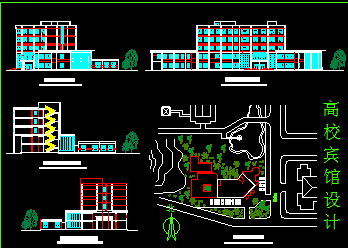 介绍: 某高校旅馆设计图纸包括平面图、立面图、剖面图等。供大家参考!