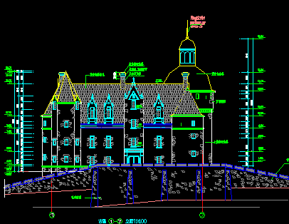 介绍: 三层坡顶法国古堡建筑设计图纸包括平面图、立面图、剖面图等。供大家参考!