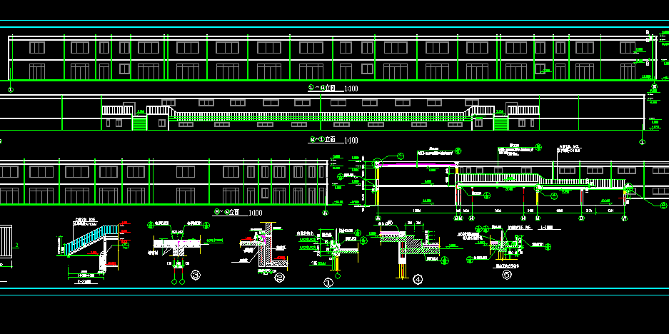 介绍: 二层广场舞台及网点建筑设计图纸包括一层平面图、二层平面图、屋面排水示意图、立面图。