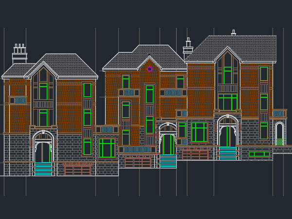 介绍: 三层错联排式别墅建筑施工图包括平面图,立面图,剖面图供大家参考。