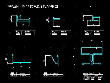 介绍: 该图为幕墙型材样本,内容包括有:隐框玻璃幕墙型材图,铝复合板(铝板)幕墙装配图等,CAD2008版,供各位参考。
