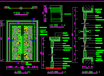 介绍: 娱乐城双开玻璃推拉门设计详图包括平面图、C剖面图、立面图等