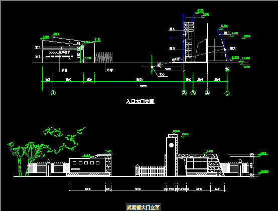 介绍: 武装部大门大样图包括入口大门立面、武装部大门立面等,供大家参考