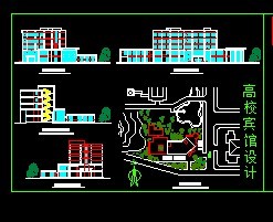 介绍: 某高校旅馆设计方案图包括东南立面、总平面、标准层平面、楼梯平面、一层平面图、二层平面图、剖面图等