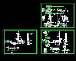 介绍: 某中学大门建筑设计图纸包括立面图、屋顶构架平面图、屋顶平面图、一层平面图、剖面图