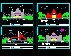 介绍: 红色旅游区大门口设计方案图包括立面图、立面图2、立面图3、立面图4
