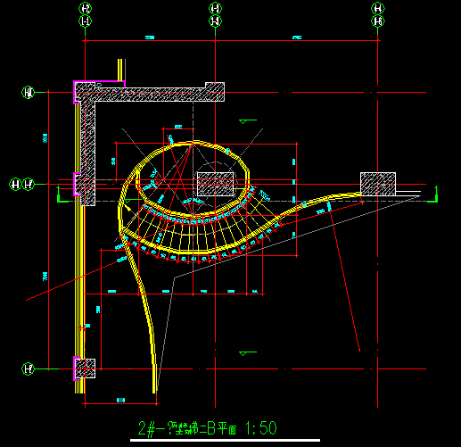 介绍: 某酒店椭圆型楼梯设计图包括平面图、立面图等,供大家参考
