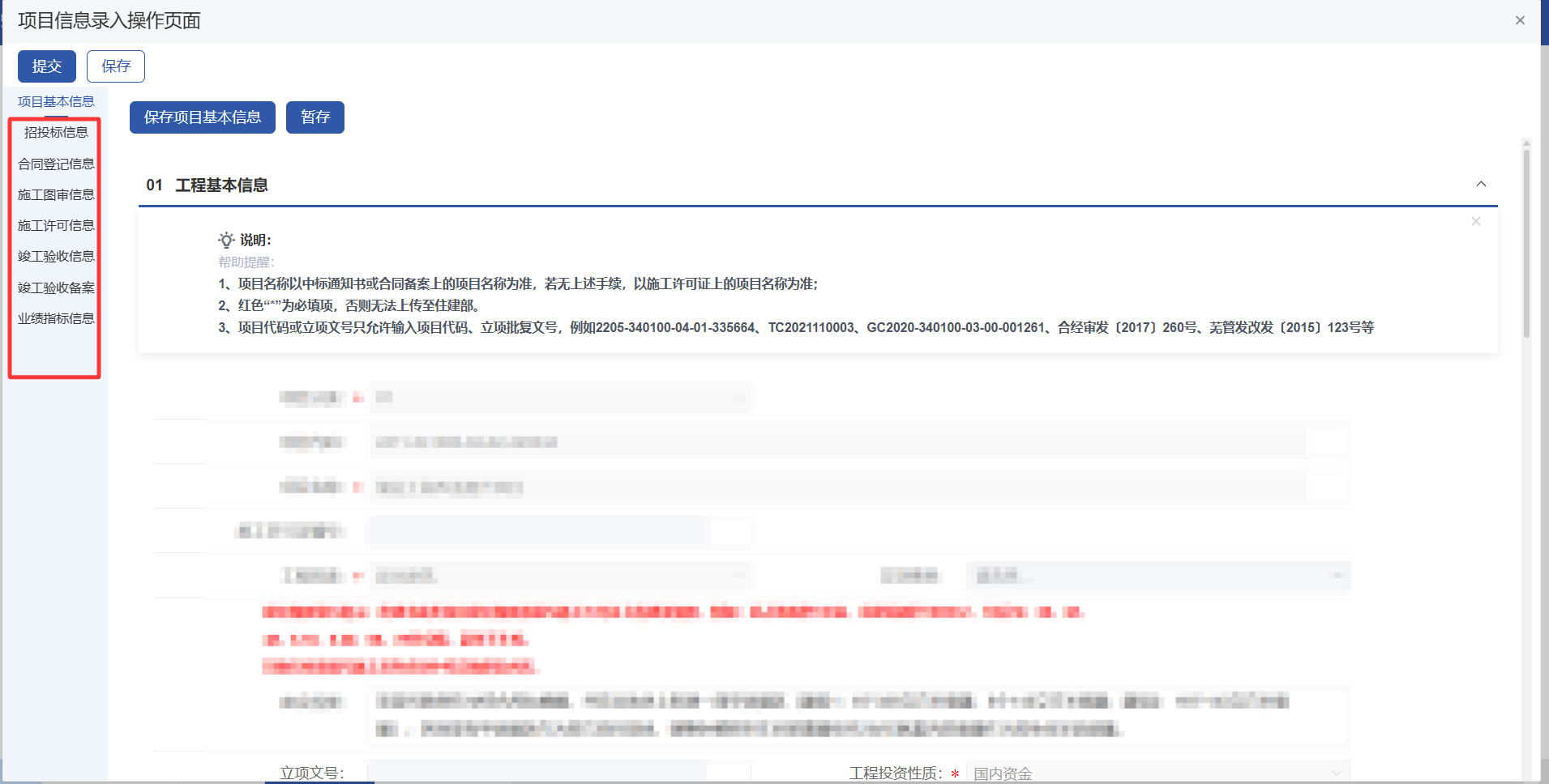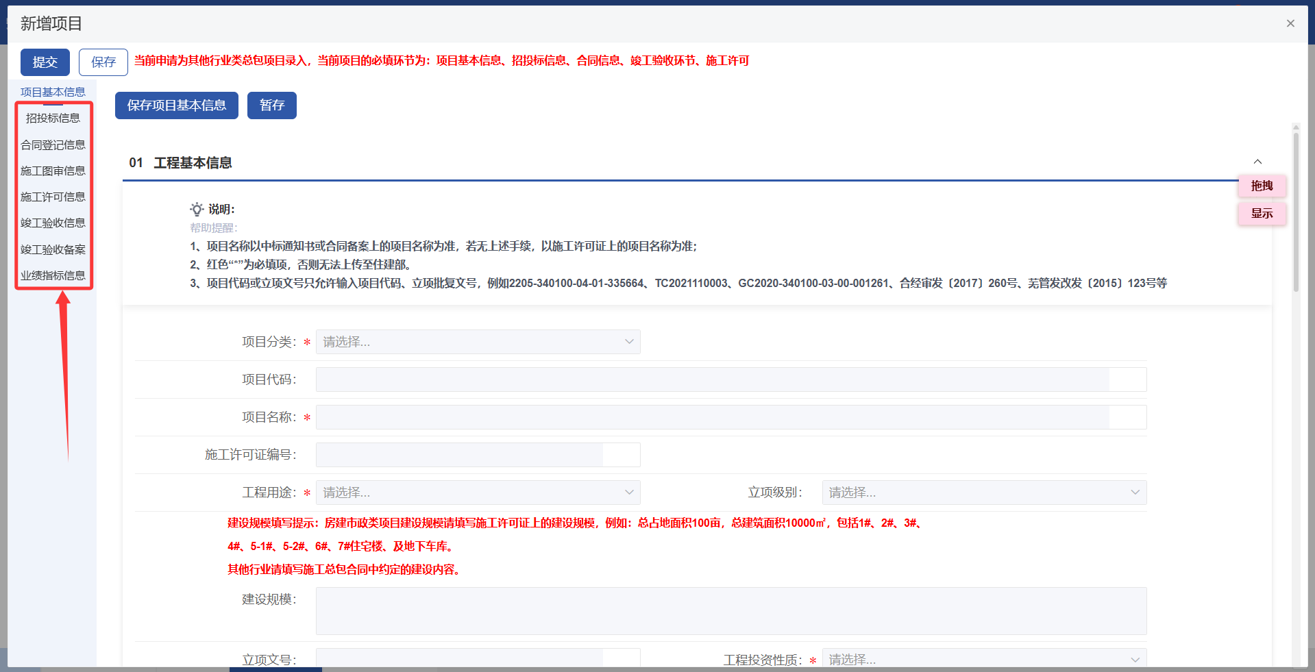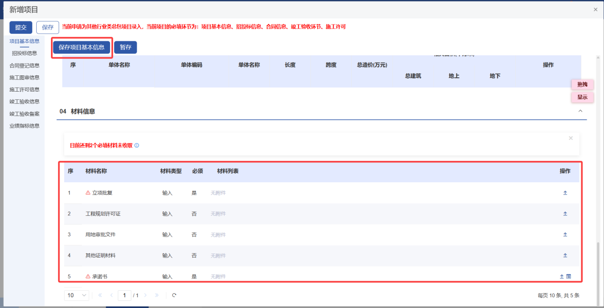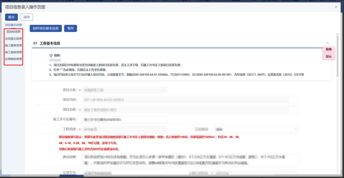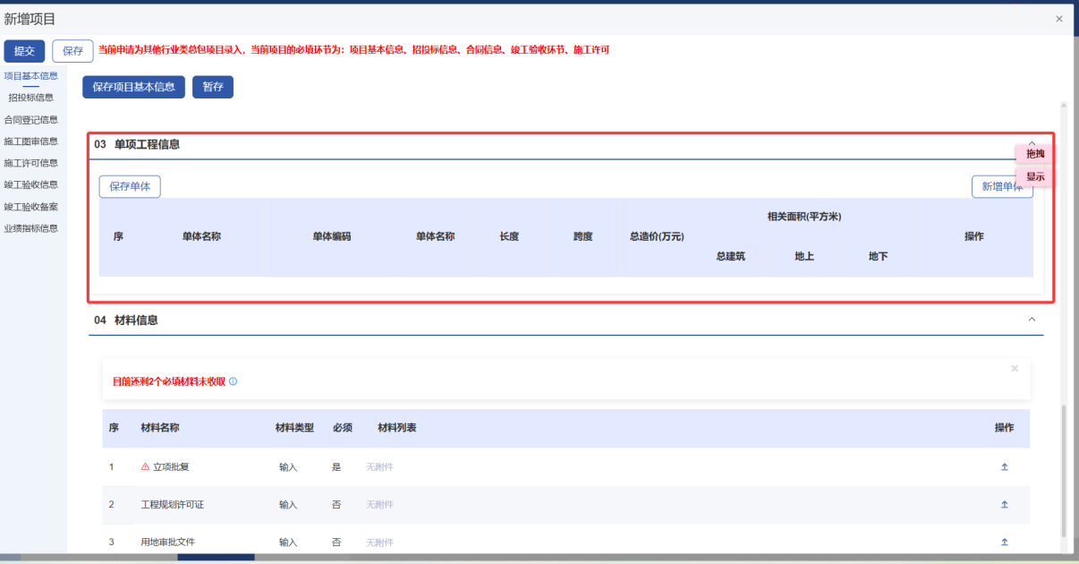 2.1.1 录入房建市政类项目信息