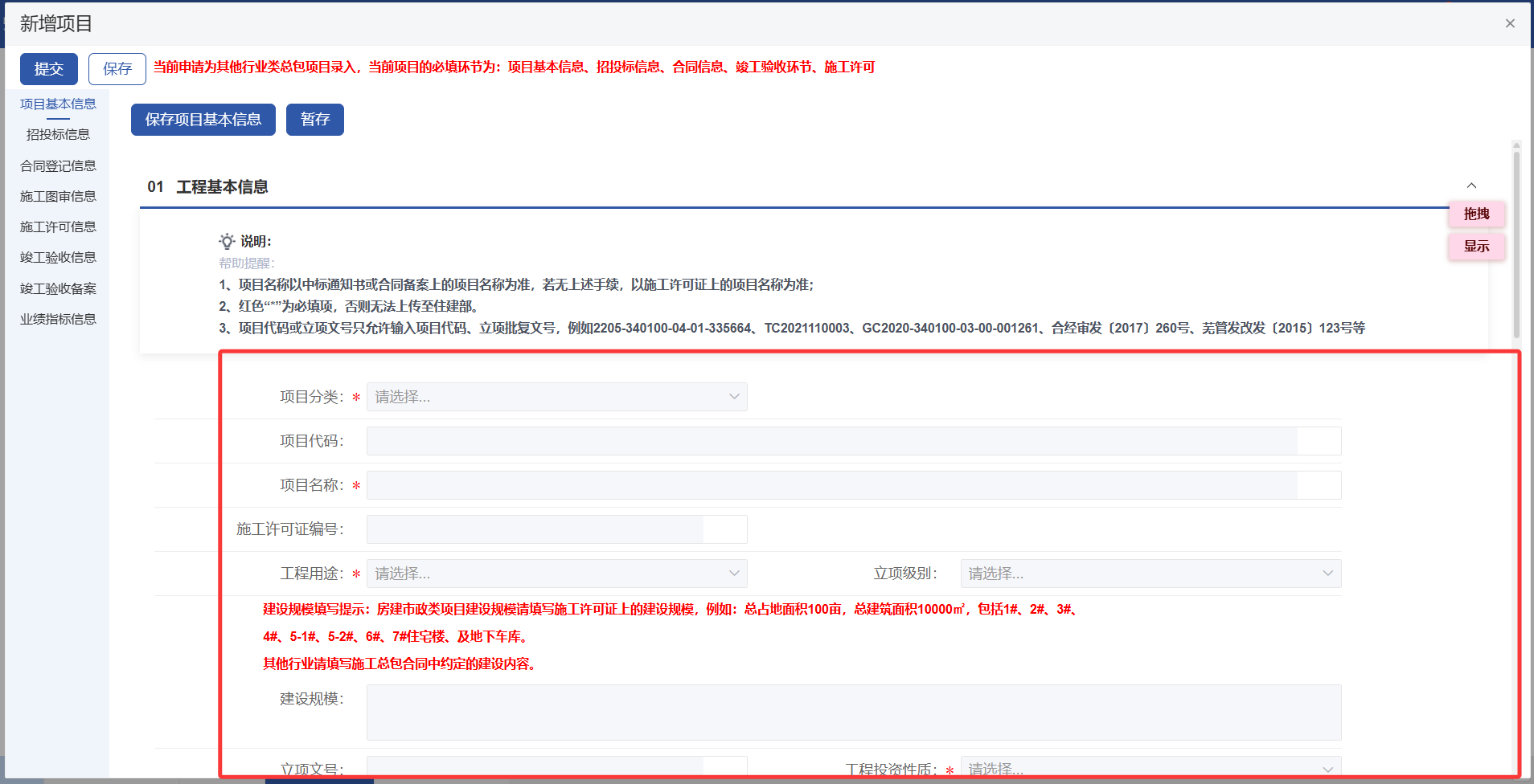 2.1.3录入其他行业类工程项目信息