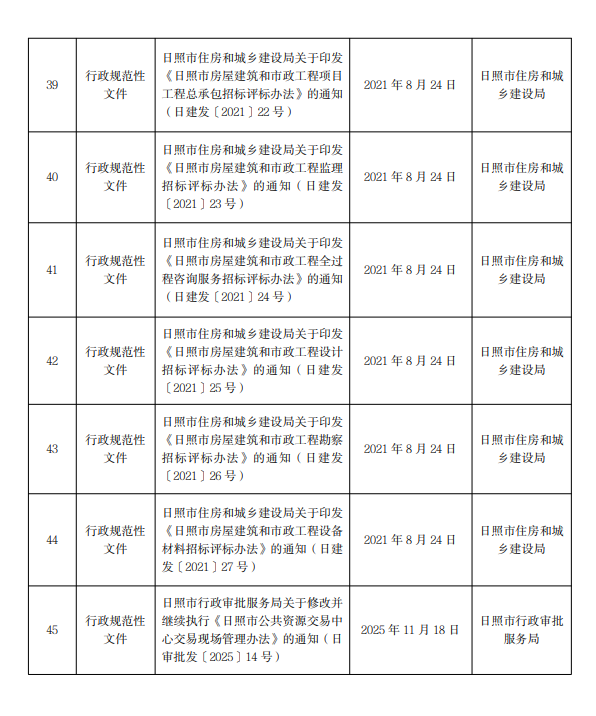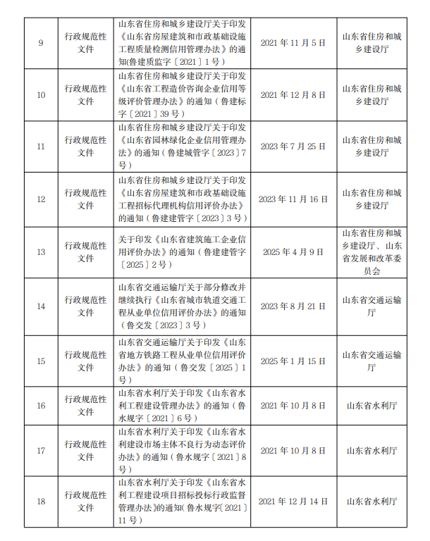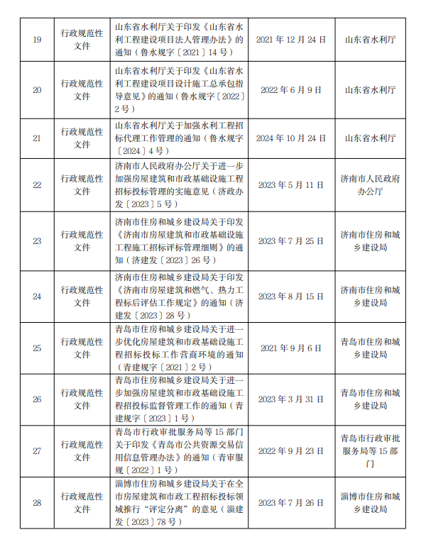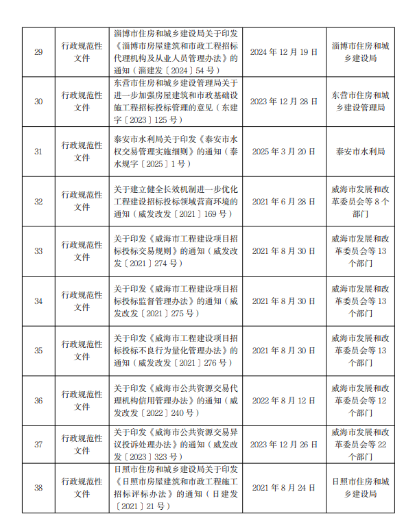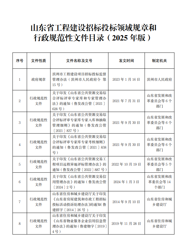 关于印发《山东省工程建设招标投标领域规章和行政规范性文件目录(2025年版)》的通知