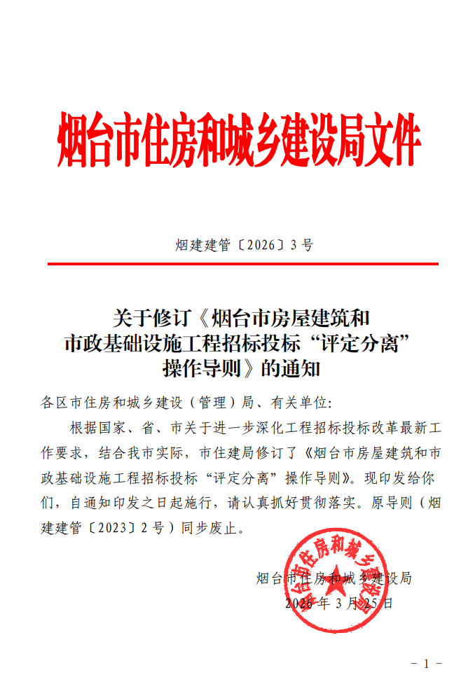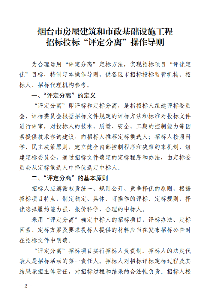 关于修订《烟台市房屋建筑和市政基础设施工程招标投标“评定分离”操作导则》的通知