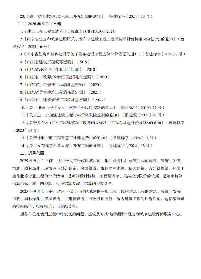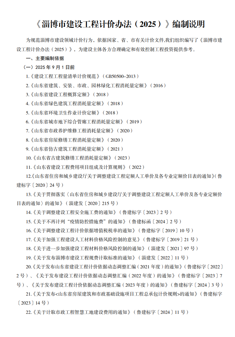 为深入贯彻国家工程造价市场化改革要求,全面落实2024版工程量清单计价系列标准在淄博市的平稳落地与有效实施,市住房城乡建设局组织编制了《淄博市建设工程计价办法(2025)》(以下简称《办法》)。现就《办法》的编制背景、主要内容及执行要点解读如下。 一、编制背景 2024年11月,住建部发布新版《建设工程工程量清单计价标准》(GB/T 50500-2024)及配套各专业工程量计算标准(以下简称“2024版清单计价标准”),标志着工程造价管理迈入新的阶段。2025年8月,省住建厅配套发布《实施指引》并修编调整各专业消耗量定额,进一步明确了定额从“依据”向“参考”转变的改革方向。 基于此,2025年版《办法》的核心任务已从2024年的“完善专业覆盖”转向“化解标准迭代冲突、引导市场化计价”。《办法》历时4个月编制,重点破解2013版与2024版清单计价规则共存期间的衔接难题,为市场主体提供清晰、稳定的计价指导。 二、主要内容 与2024年版相比,2025年版《办法》在结构体系和计价理念上均有重大调整。2025年版《办法》共包括五个部分内容,涵盖概算、施工总承包计价、工程总承包计价、有关文件等内容。其中:施工总承包计价又分为工程量清单计价和定额计价,该部分为《办法》的核心内容。 (一)概算定额。主要包括概算费用组成、概算费用计算程序及费率及有关问题的说明。需要注意的是,虽然省住建厅已发布修编调整后的建设工程造价计价依据,明确取消规费,但因调整未涉及概算,在概算编制过程中仍按原相关文件执行。 (二)施工总承包计价(工程量清单计价)。主要包括2013版工程量清单计价和2024版工程量清单计价两部分内容。因两版工程量清单计价在通用规定、计算程序、各专业工程量计算规则上都有很大程度的调整,《办法》系统梳理了工程费用项目组成、费用计算程序及费率、工程类别划分标准及使用说明等方面的不同,为过渡期项目提供明确操作指引,避免规则混用。 (三)施工总承包计价(定额计价)。本部分按照时间节点(2025年11月1日)划分为两个主要部分,详细阐述2016版各专业消耗量定额使用过程中应注意的问题和2025年新修编调整后的各专业消耗量定额的主要变化。应重点关注的是,修编调整后的计价依据是各相关专业建设工程开展发包与承包计价活动的“参考”,不再是“依据”。在后续计价活动中,各相关单位应逐步建立自身计价体系。 (四)工程总承包计价。本部分主要包括工程总承包项目清单编制、标底或最高投标限价编制、投标报价编制、合同价款约定及合同结算支付规则等内容。 (五)有关文件。汇编2025年度国家部委、省、市发布的造价管理及咨询行业政策文件,为企业提供“一站式”政策查询支持。 三、其他说明 本《办法》印发日期是2026年3月4日,施行日期是2026年3月4日。施行之日前已签订合同的工程,除合同另有约定外,仍按原规定计价依据版本执行。 原文如下: 淄博市住房和城乡建设局 关于印发《淄博市建设工程计价办法(2025)》的通知 淄建发〔2026〕5号 各区县住房城乡建设局,高新区、经济开发区建设局,文昌湖省级旅游度假区城乡建设局,各有关单位: 为落实工程造价市场化改革任务,规范全市建设领域各方主体计价行为,为市场主体开展计价活动提供参考,发挥市场在工程造价形成中的决定性作用,依据国家、省、市有关计价文件规定,市住房城乡建设局组织编写了《淄博市建设工程计价办法(2025)》(以下简称“本办法”),现予以印发,有关问题通知如下: 一、本办法适用于我市行政区域内建筑、装饰、安装、市政、园林绿化、房屋修缮、古建筑修缮、市政养护维修、仿古建筑、环境卫生作业等工程的发承包计价活动。 二、本办法自印发之日起施行,之前已签订合同的工程,除合同另有约定外,仍按原规定的计价依据版本执行。 三、本办法由市住房城乡建设局负责解释。 淄博市住房和城乡建设局 2026年3月4日 附件下载:淄博市建设工程计价办法(2025)