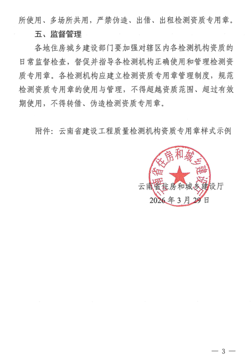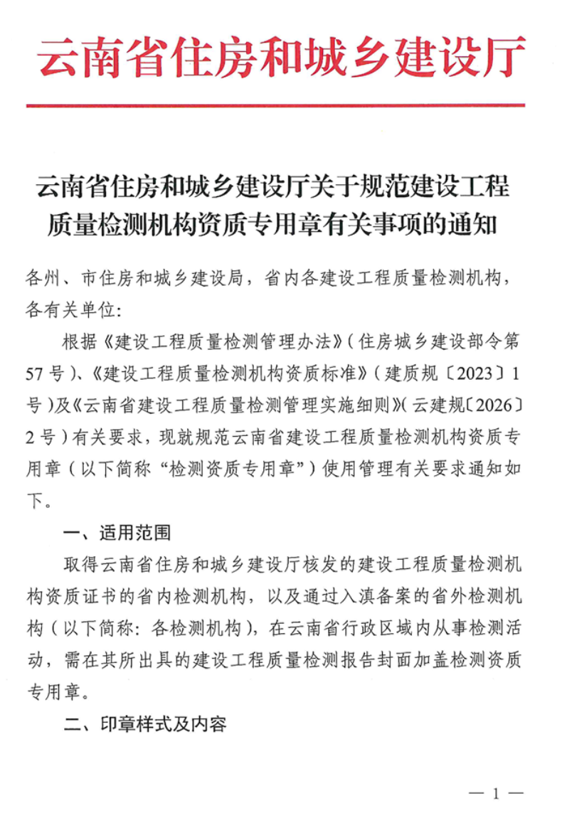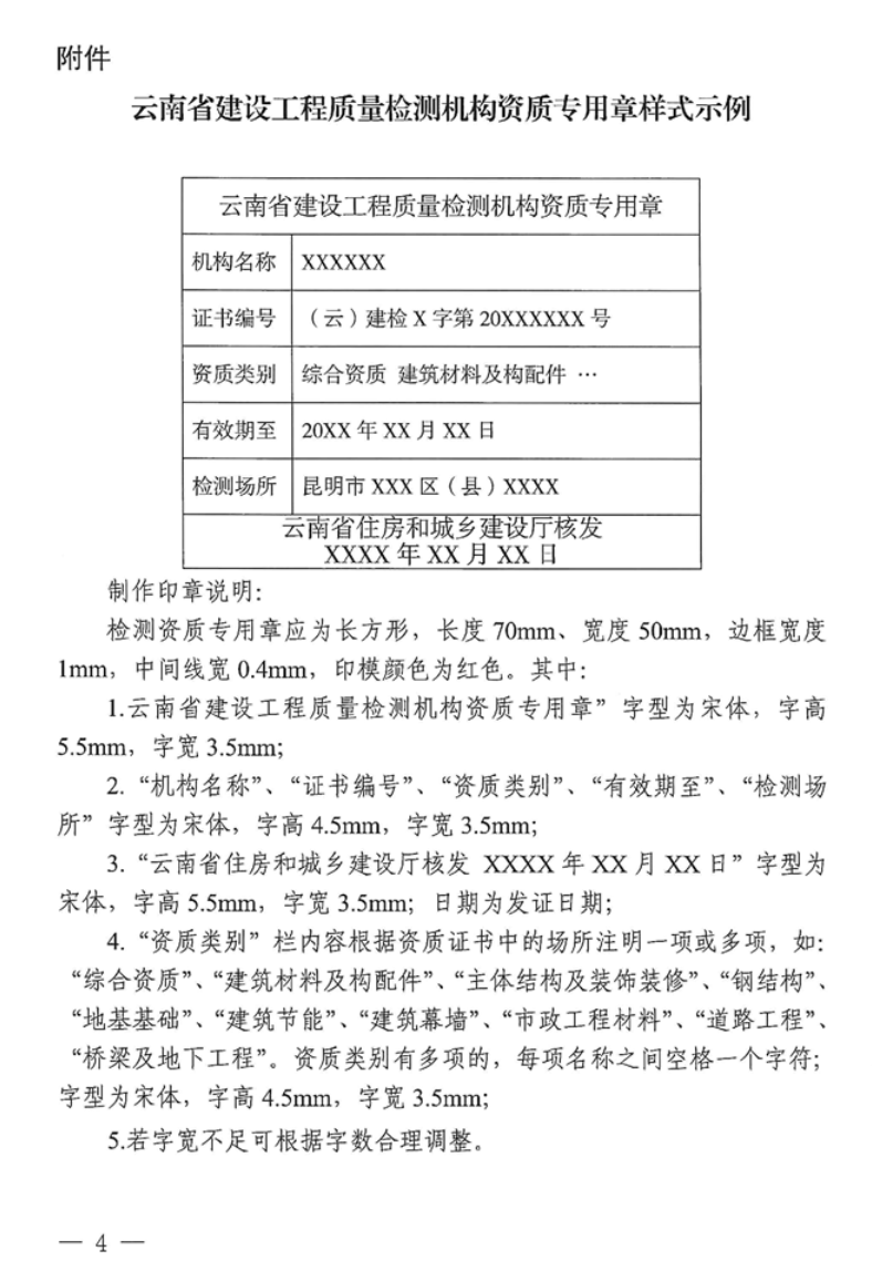 云南省住房和城乡建设厅关于规范建设工程质量检测机构资质专用章有关事项的通知
