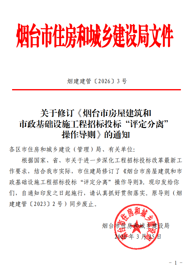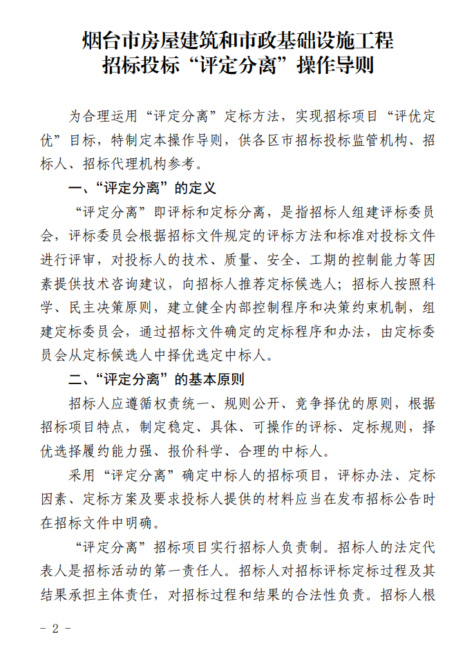 关于修订《烟台市房屋建筑和市政基础设施工程招标投标“评定分离”操作导则》的通知