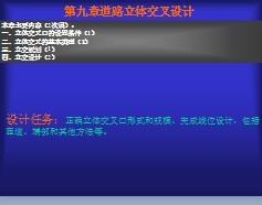 介绍: 设计任务:正确立体交叉口形式和规模、完成线位设计,包括匝道、端部和其他方法等。